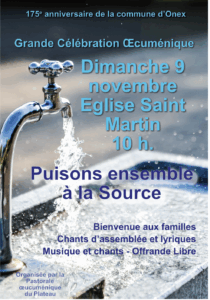 - Célébration Œcuménique à Saint-MartinÀ l’occasion du 175ᵉ anniversaire de la commune d’Onex, la Pastorale œcuménique du Plateau vous convie à une grande célébration œcuménique le dimanche 9 novembre à 10h à l’église Saint-Martin. Ce temps fort sera marqué par des chants… Lire la suite : Célébration Œcuménique à Saint-Martin